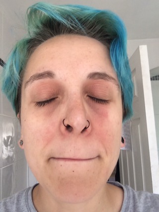 Well, not so much woo as you can see my skin is bad at the moment. If you’ve been reading my other blog entries you’ll know that I’ve been having a bit of a shit time recently. (Please see my last entry, no title, that just says ‘Everything is fucking bullshit.’) I’m also not sleeping well and have been a bit abusive of my body. I’ve been drinking and smoking a lot and haven’t been keeping up with the zinc supplements. My skin has been obviously been showing the symptoms too. It’s feeling a little bit better (this pic was taken a few days ago) but it’s peeling and rough and my skin is so incredibly dry. I’ve been washing my face with dead sea salt, but am only managing once a day at the moment and it stiiiiiiings so bad! =[